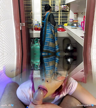 I saw my aunty cooking alone in the kitchen, I hugged her and began fuckin'