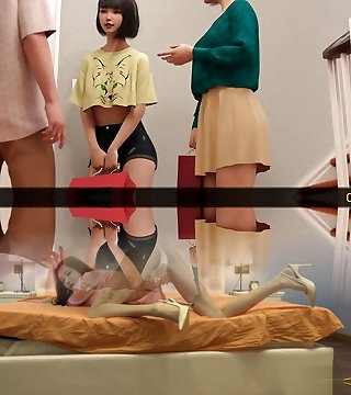 Oh no! Teen girl Student finds out her stepsister fucking with her stepfather when she gets home