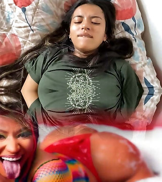 Insatiable brunette with a big ass, she tongues her stepbrother's cock-Spanish Porn