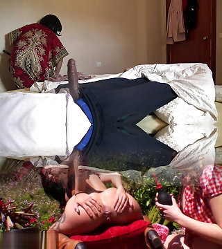 Showing dick to Satin maid