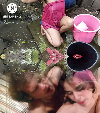 Indian house wifey bathing outside