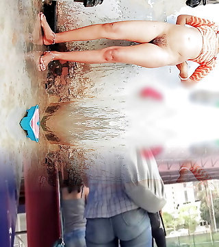 Mature Aunty outdoor risky public boobs flashing and urinating
