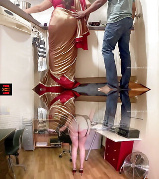 Indian Couple Romance in the Kitchen - Saree Sex - Saree hoisted up and Ass Spanked