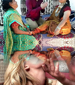 Hot threeway sex with milf bhabhi and her village stepsister!!