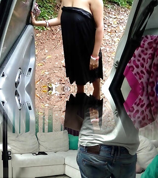 While driving she wants to play a sloppy game, risky public outdoor sucking and plumbing Gf
