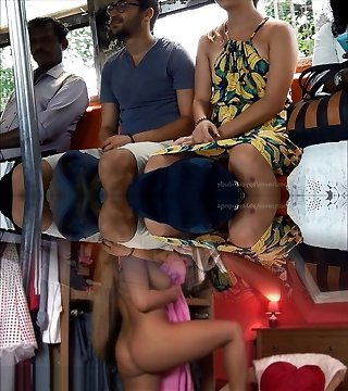 Sexy European Couple in Sri Lankan Train with Legs spread