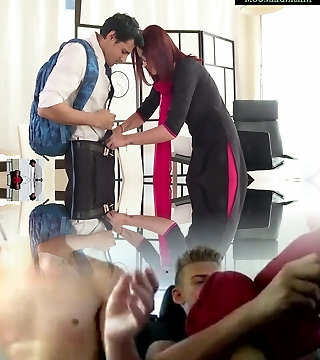 Miss Hot And Sexy Teacher And Old Step Father Trains His Cherry Son How To Fuck 1st Time