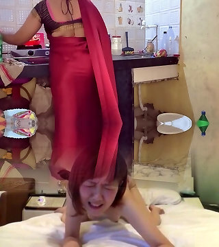 While the Desi stepmom washes hooter-sling & undies, stepmom took off the stepson's pants and Naked him, Then asks him to drill her - Cum
